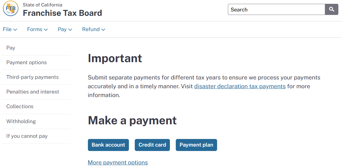 To make online payments to the FTB, you have two main options: (1) by making an account, or (2) by paying as a guest, without an account. We recommend creating an account to track your payments; however, this article provides step-by-step instructions for proceeding without one.